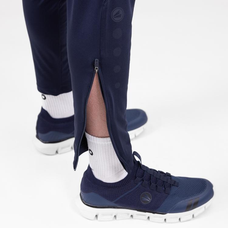 A JAKO Power edzőnadrág Keep Dry funkciójával a nedvesség közvetlenül az anyag felületére jut, és gondoskodik arról, hogy sportolás közben ne hűljön le, és az anyag nagyon gyorsan száradjon. A kétrészes elasztikus derékpánt húzózsinórral különösen jó tartást biztosít edzés közben. Továbbá a cipzáras oldalzsebek elegendő tárolási lehetőséget kínálnak, és a lábszárak is cipzárosak.