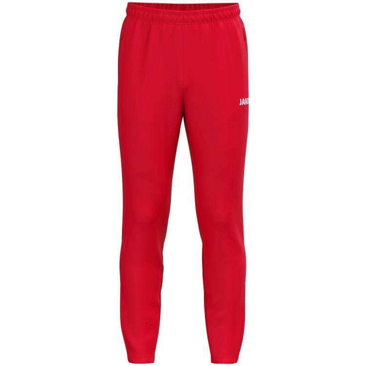 Poliészter-terry anyag, vádlinál bordázott betét, cipzáras oldalzsebek, cipzáras szárvég.
